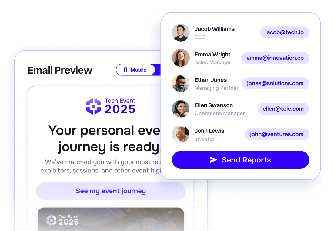 Exhibitly.ai lets visitors generate personalised ‘Why Attend’ reports on your event website, showing them exactly why they should attend.